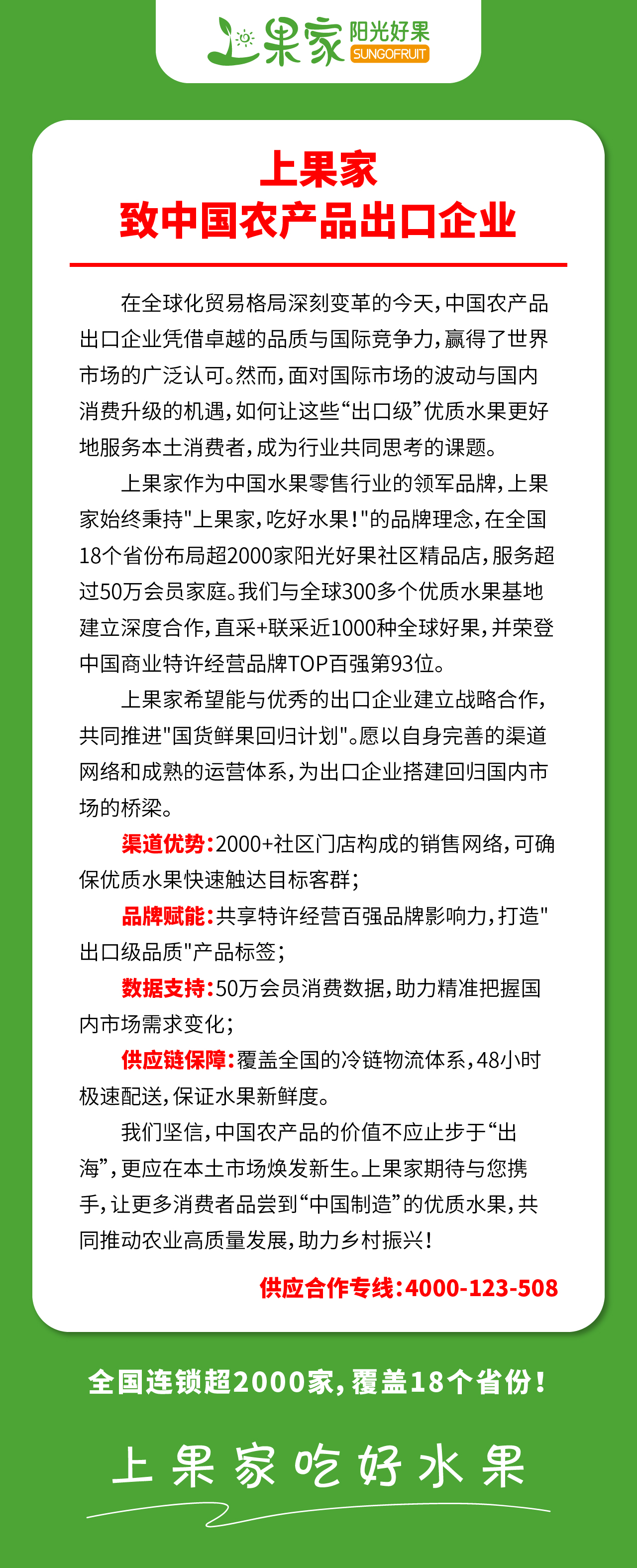 上果家 致中國農(nóng)產(chǎn)品出口企業(yè)